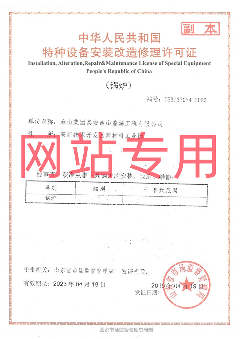 特種設備安裝改造維修許可證(鍋爐1級)
